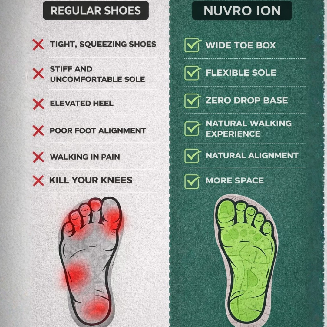 With Nuvro Ion, you’re not just wearing shoes — you’re reclaiming the way your body was designed to move.Experience true comfort, stronger feet, and a naturally aligned posture with every step. Nuvro Ion delivers the sensation of walking barefoot — while still protecting you from the ground beneath you.